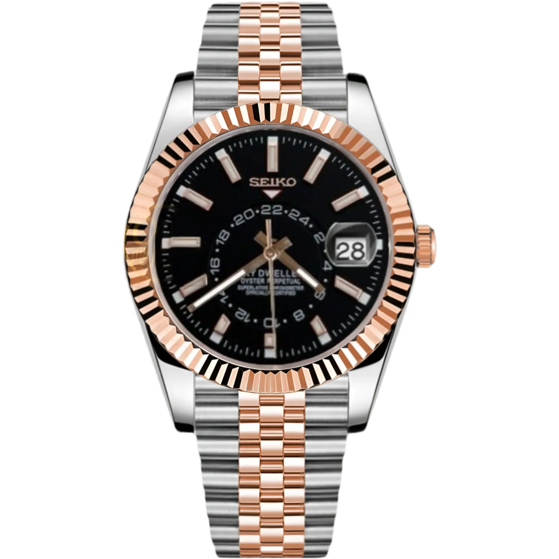 Inspired by the iconic Sky Dweller design, we present the Seiko Mod Sky Dweller — a sophisticated timepiece that merges world-traveler functionality with everyday elegance.